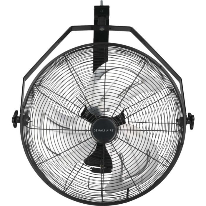 The Denali Aire 20-inch heavy-duty high velocity wall-mount fan is your go-to wall-mounted cooling solution. Boasting 20-inch industrial-grade aluminum fan blades, it is driven by a robust 1/6 HP direct drive motor, producing up to 4750 CFM of airflow. With two-speed settings, it is efficient and space-saving. Crafted with all-metal construction and a rugged powder-coated finish, it is designed for durability. The heavy-duty copper-wound permanently lubricated motor ensures lasting reliability. Wall-mounted with a bracket, it optimizes floor space. Plus, the 6-foot grounded power cord adds convenience to its cooling capabilities.
